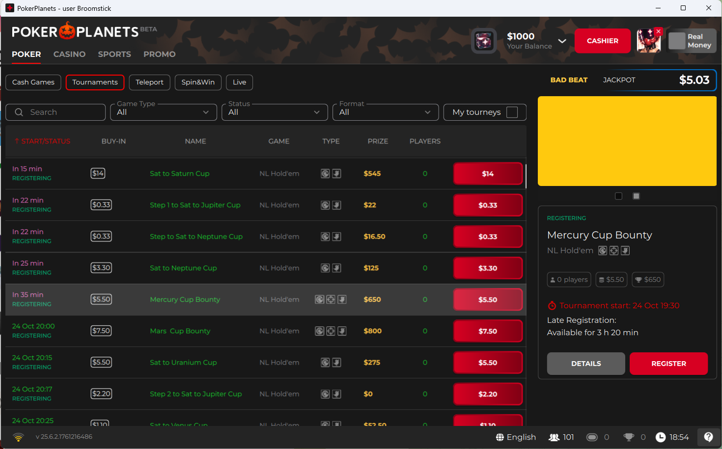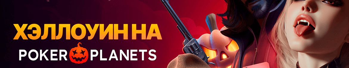 PokerPlanets уже обновил дизайн под Хэллоуин — внутри рума доступны фирменные тематические элементы и баннеры, чтобы игроки прочувствовали атмосферу.